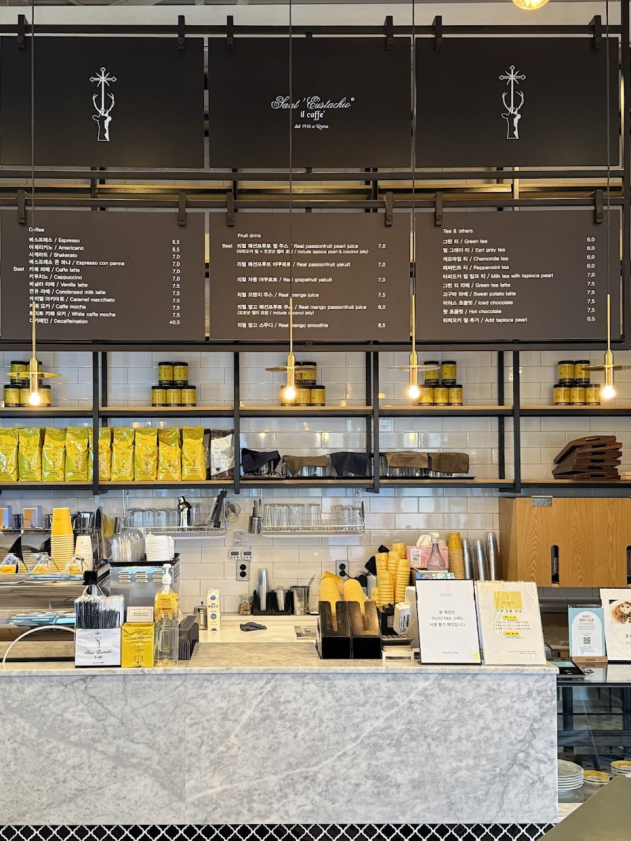 Welcome to Sant'Eustachio Il Caffè, a renowned café nestled within the luxurious Ananti Hilton in Gijang, South Korea. This celebrated spot is part of Rome's "Big Three," presenting an authentic taste of Italian coffee culture against a stunning coastal backdrop.